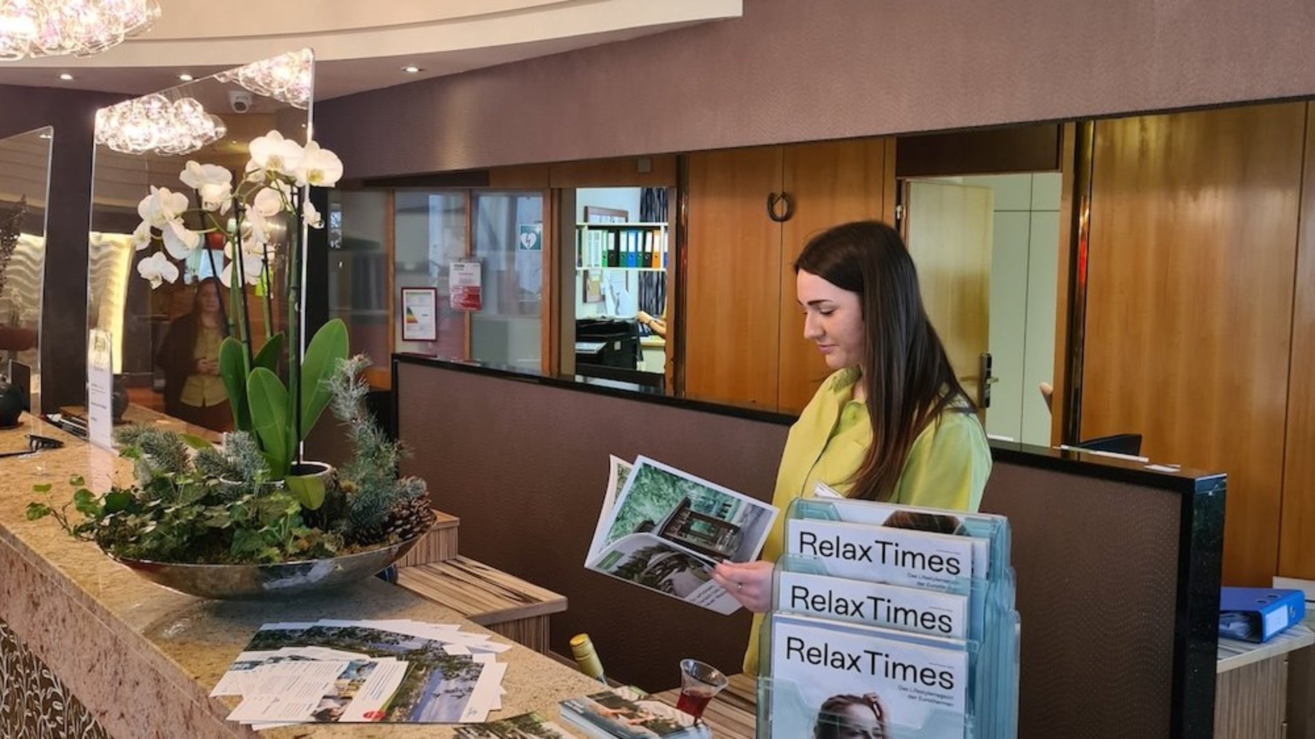 mit Bücherecke und Info TV