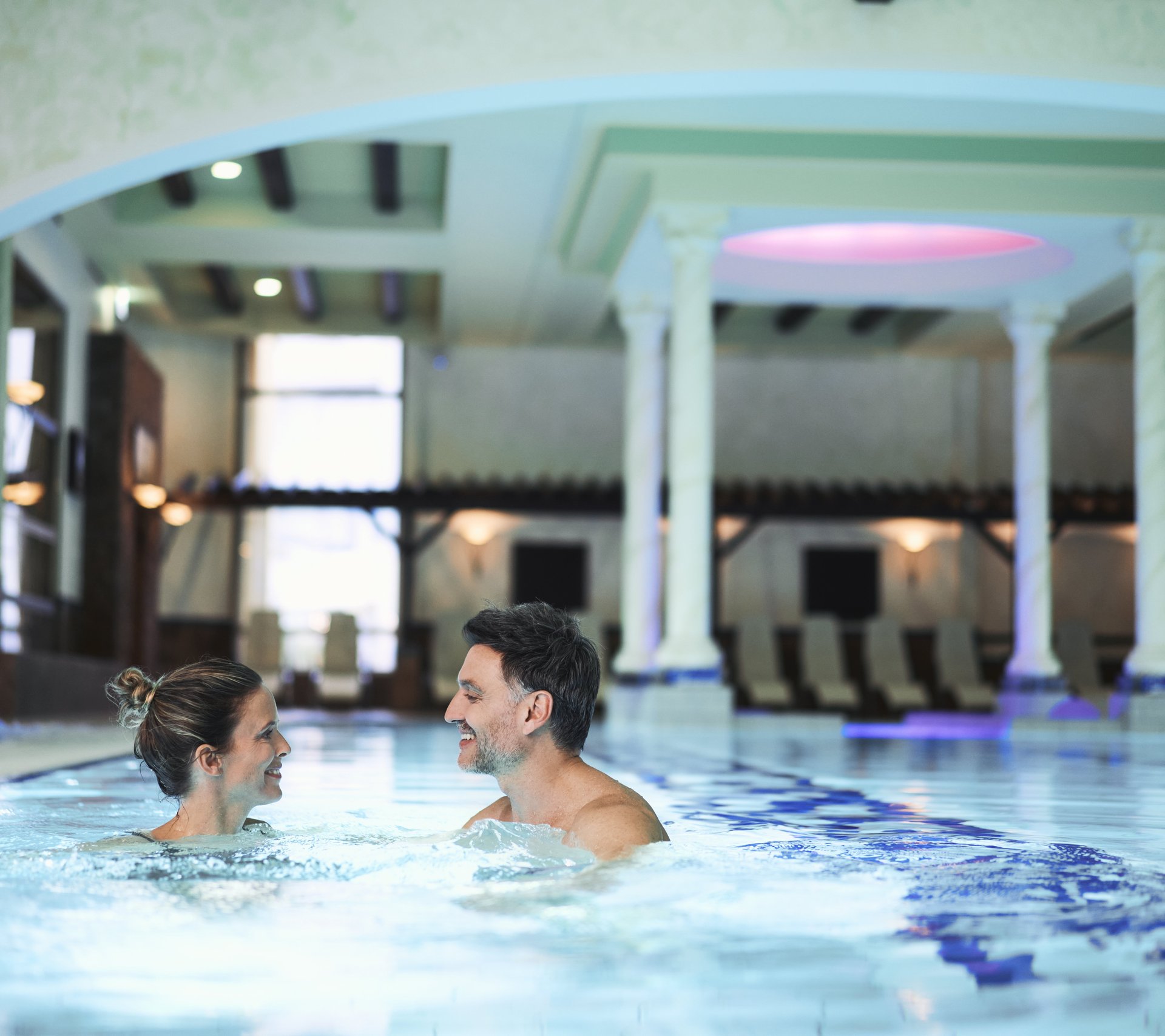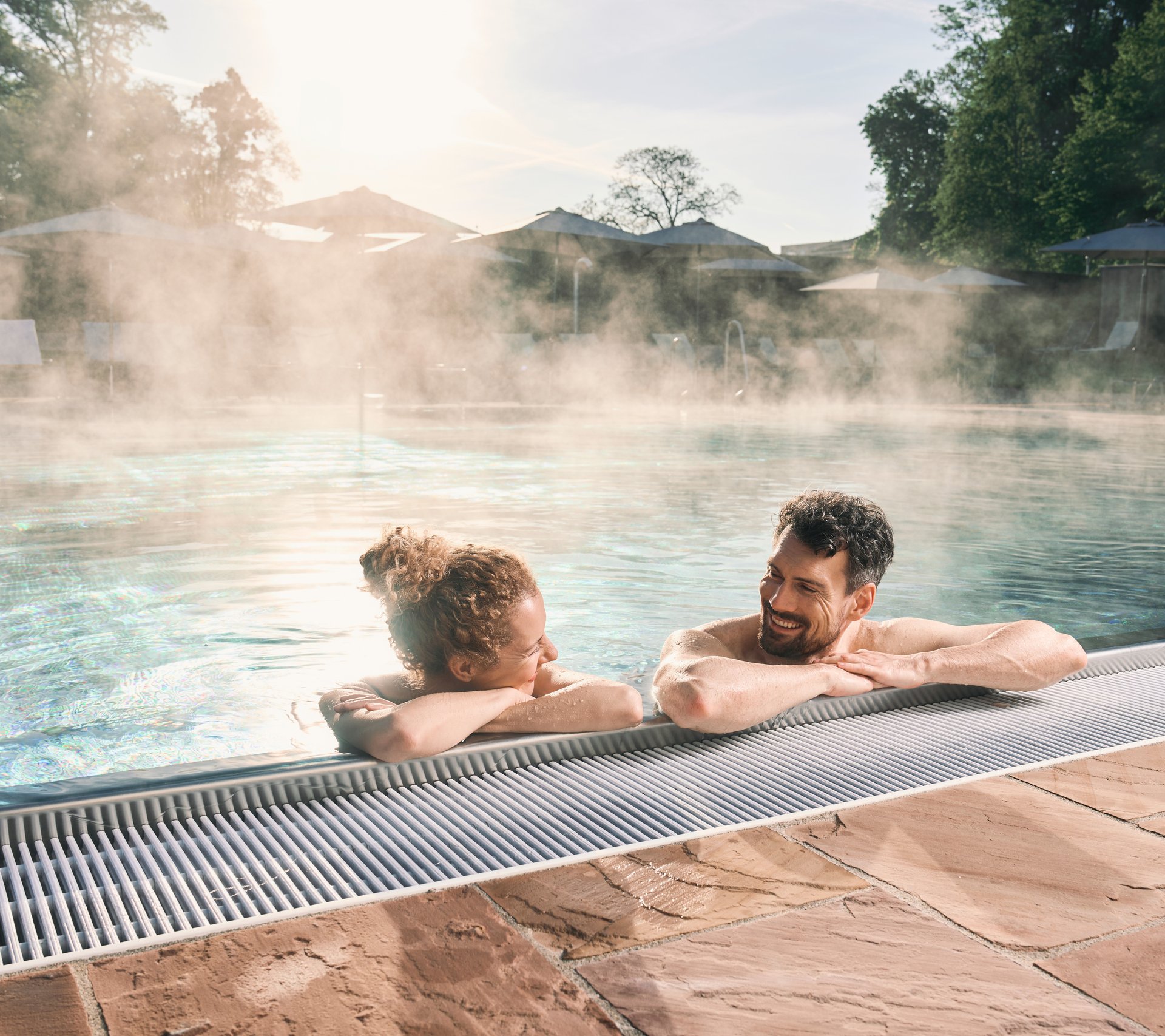 Schwimmen mit herrlichem Blick in die Voralpen oder Nackenverspannungen unter dem Wasserfall des Schwanenhalses lösen.