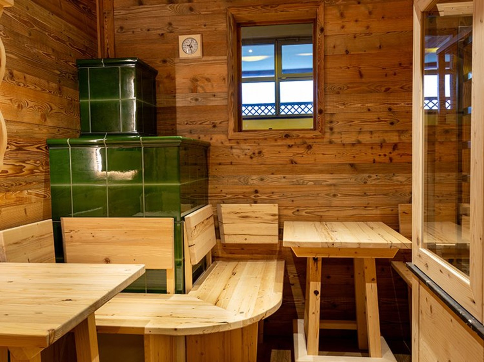 Die Dörrhaussauna bietet zudem großzügigen Raum zum Ausruhen und Abschalten. Eine perfekte Verbindung aus Entspannung, Genuss und traditionellem Handwerk.