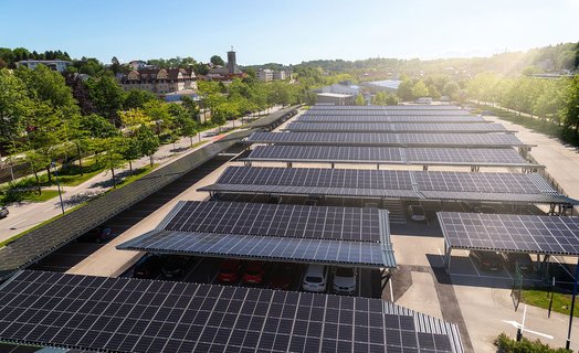 Mit einer Größe von 6.000 m2, das entspricht 2.887 Modulen, handelt es sich auch um eine der größten Anlagen dieser Art in ganz Österreich. Durch die Errichtung auf einer bestehenden Parkfläche konnte ein zusätzlicher Flächenverbrauch vermieden werden.